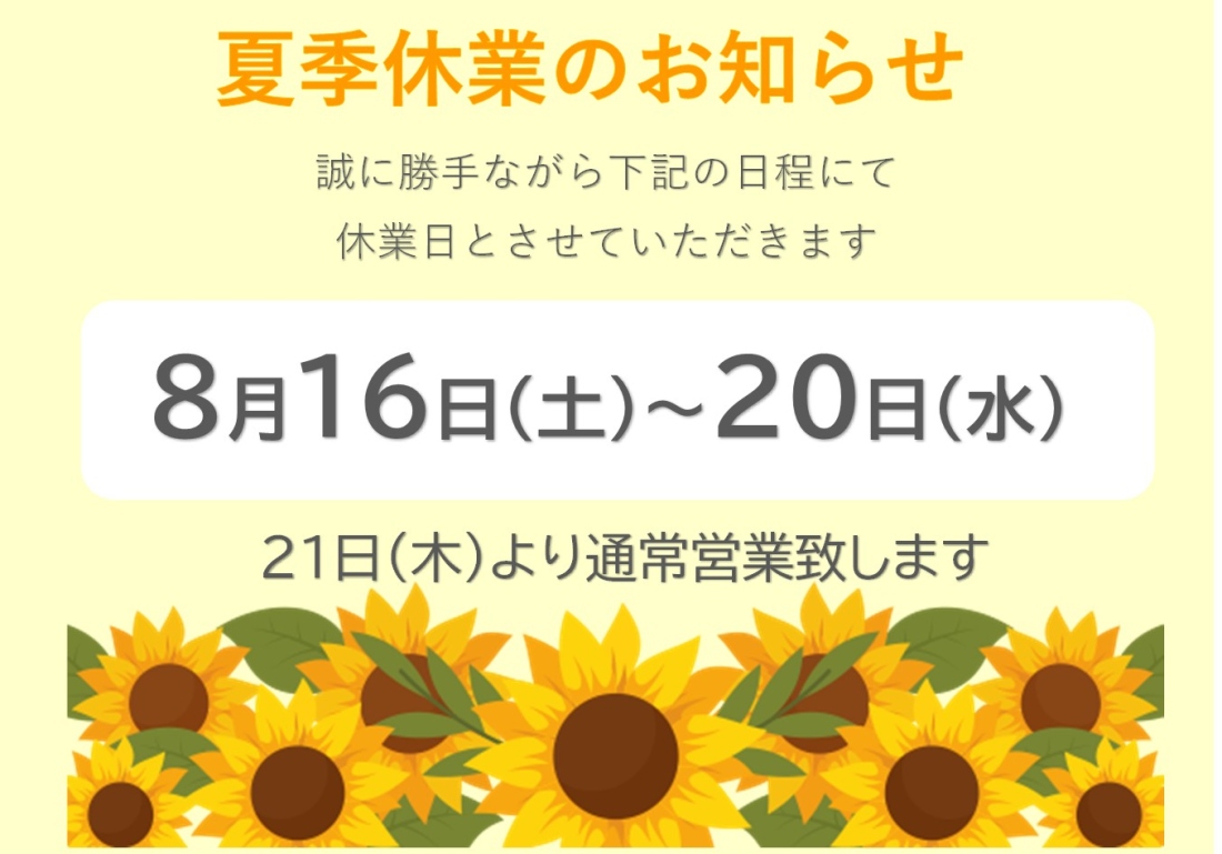 夏季休業日のご案内