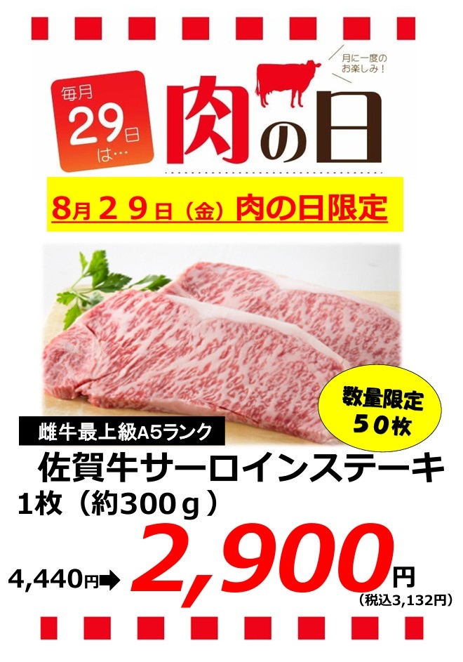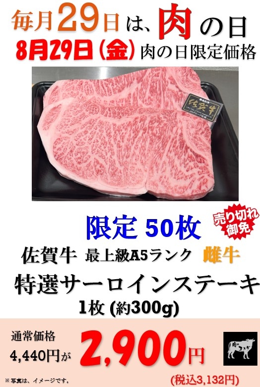 8月29日(金) 肉の日 【本店】