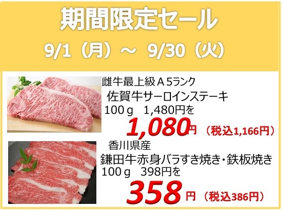 本店 9月週末特売商品
