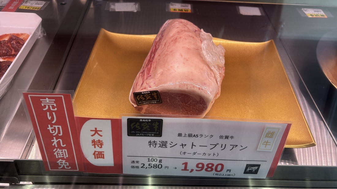 三連休 大特価●最上級A5ランク佐賀牛特選シャトーブリアン(雌牛)オーダーカット100g 2,580..