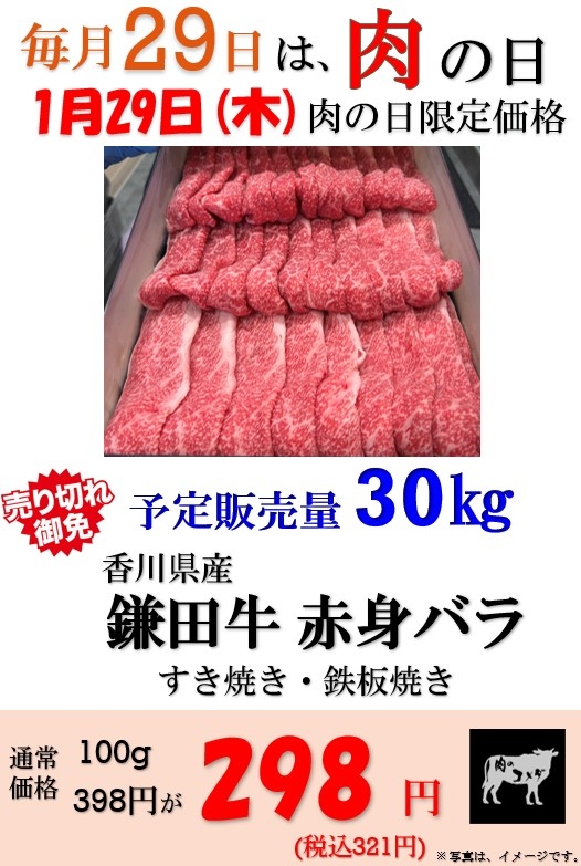 1月 月間奉仕品両店舗 【本店・学園前店】同時販売です。1月8日(木)~ 1月31日(土)まで香川県..