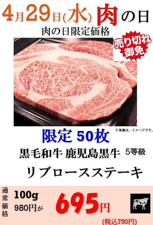 3月29日(日) 肉の日‼ 【本店・学園前店】